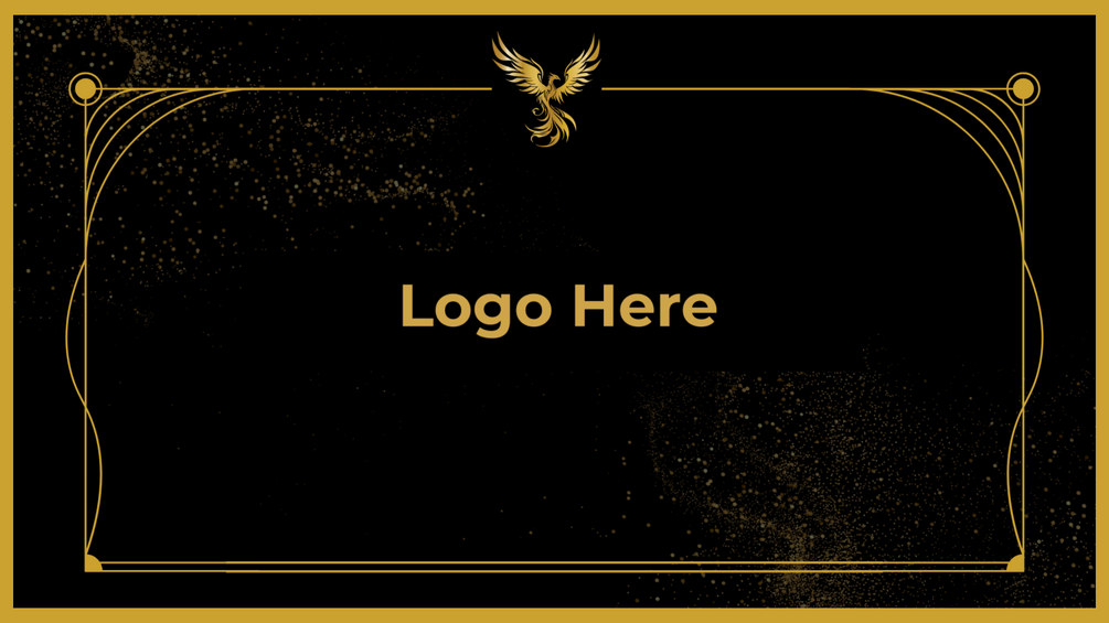 This design has an innerframe which is unfortunately not editable that much, but you can remove the phoenix and add anything that you want in there. You can add a full image and make this as a frame for the image or add a logo in the center as indicated in the image!